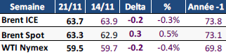 Le Brent en baisse à 64 $/b soutenu par les tensions géopolitiques, plafonné par les fondamentaux