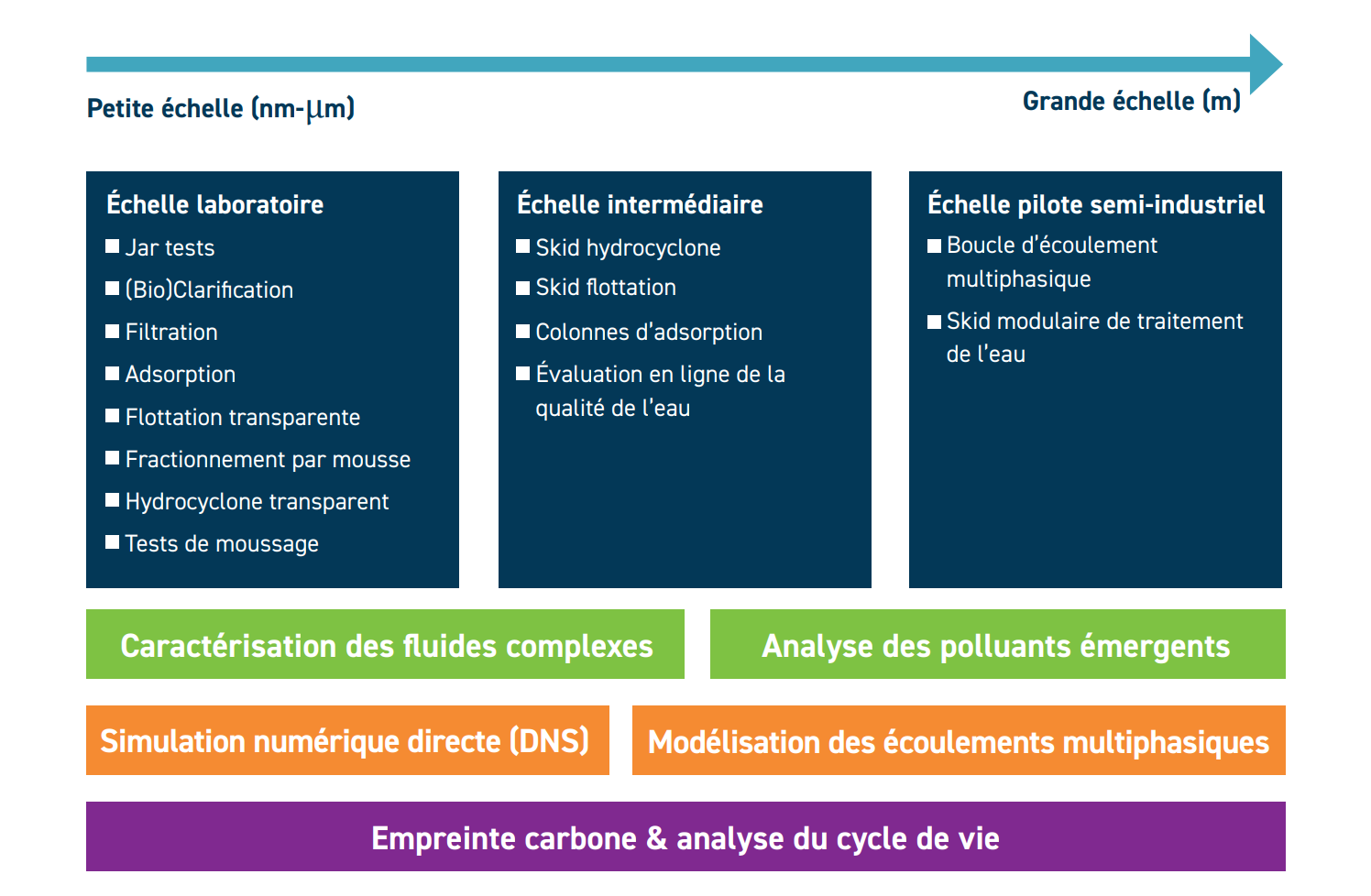IFPEN s’appuie sur une recherche adossée à une plateforme Carnot dédiée au traitement de l’eau. Son savoir faire et ses compétences multidisciplinaires (expérimental et modélisation), issues notamment du traitement d’eaux industrielles complexes dans le cadre de ses activités hydrocarbures historiques, lui permettent :